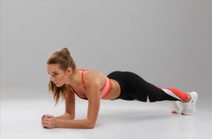 Planks focus on core strength and improve posture. The abdominal muscles, lower back, and shoulders work in harmony together to keep the plank position stable.